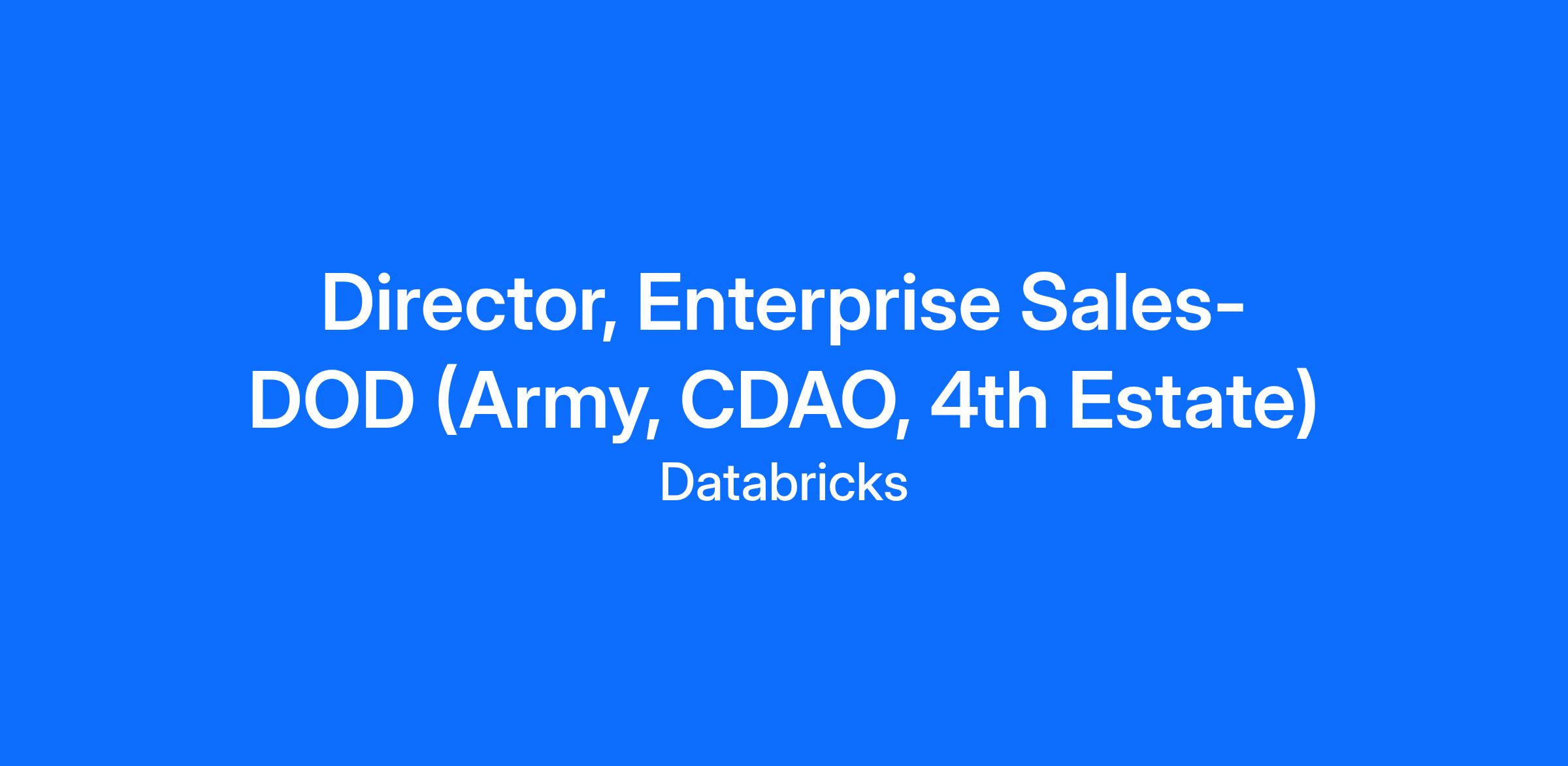 We are seeking a Director, Sales to lead a team of Enterprise Account Executives. In this role, you will manage a team of field sellers who are focused on selling to a set of accounts within Department Of Defense (Army, 4th Estate, and CDAO). Your success will be measured by your team's overall quota achievement, new logo acquisition, and growth in Databricks usage.