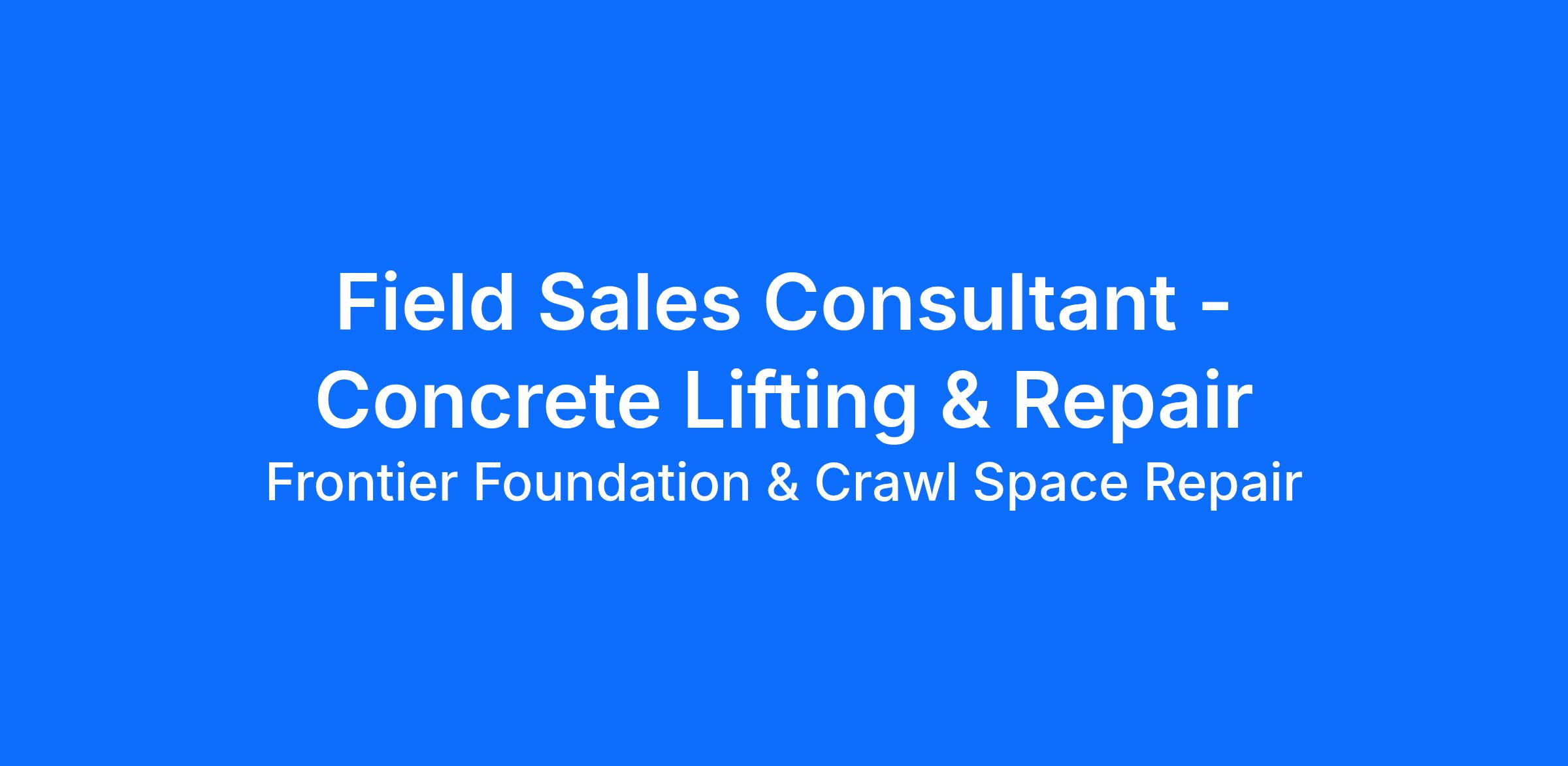 We are looking for an energetic Field Sales Consultant to join our team and play a vital role in connecting homeowners with solutions for their concrete leveling and foundation needs.