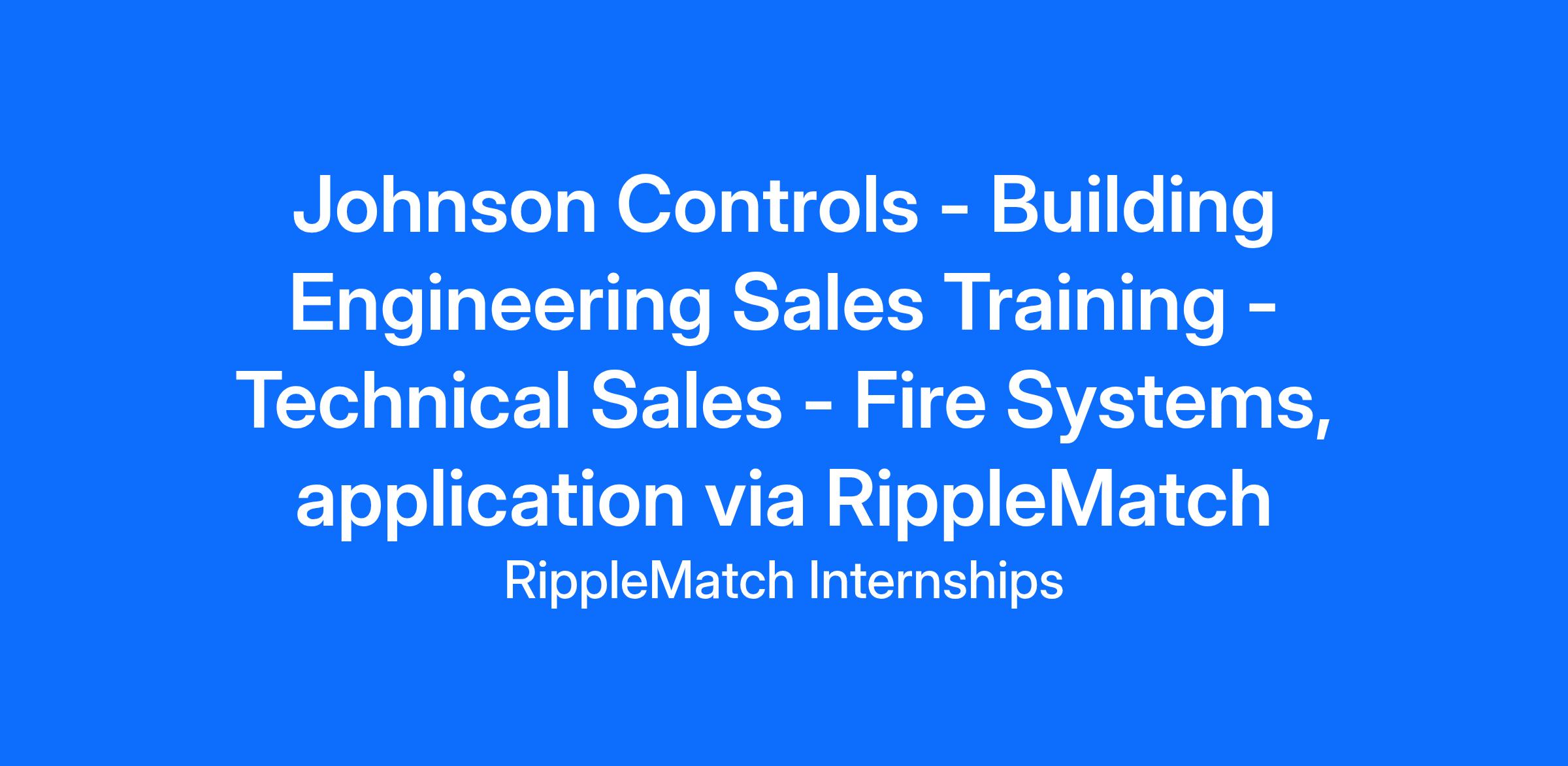 This role is with Johnson Control. Johnson Control uses RippleMatch to find top talent.