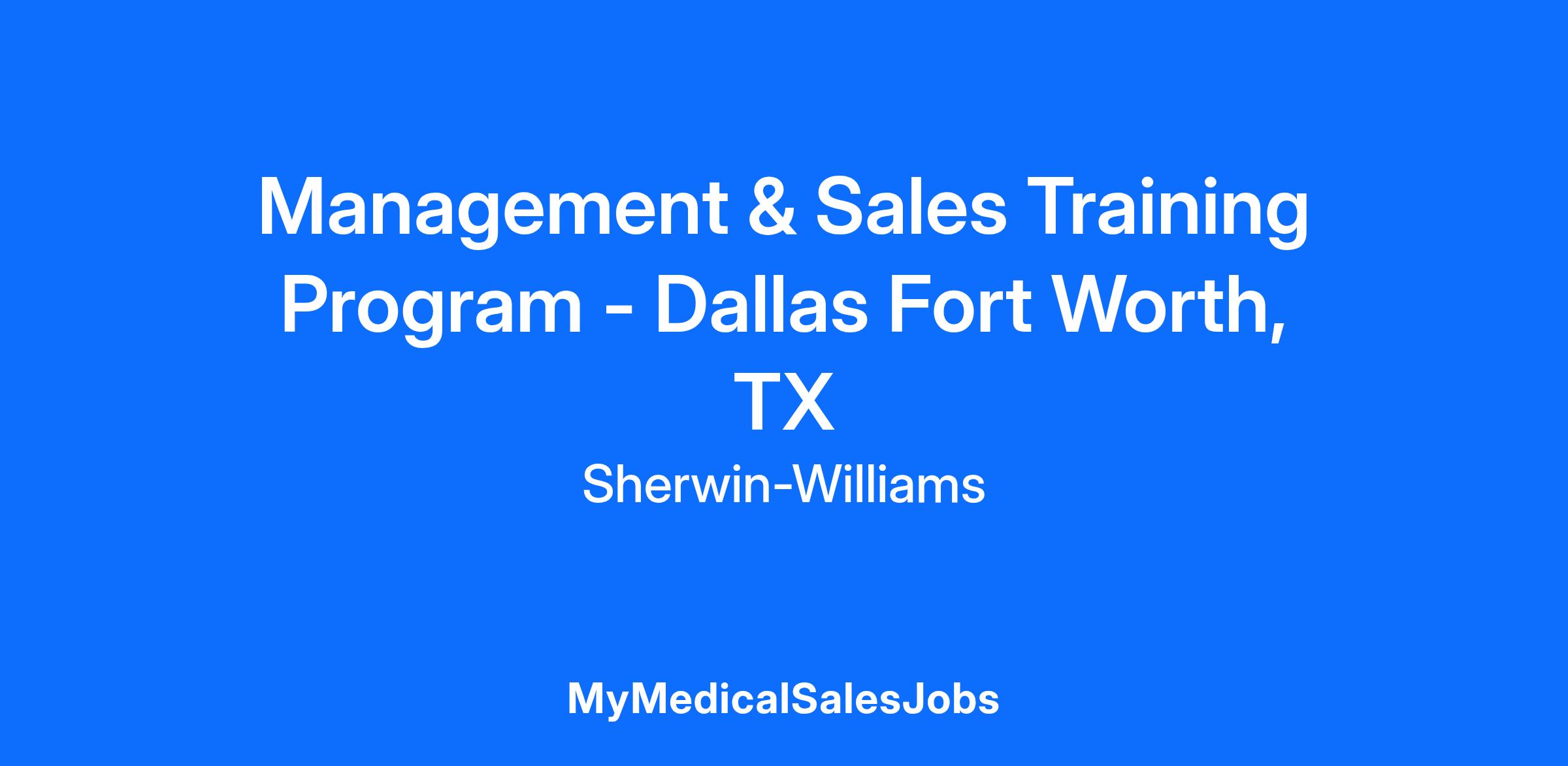Management & Sales Training Program - Dallas Fort Worth, TX