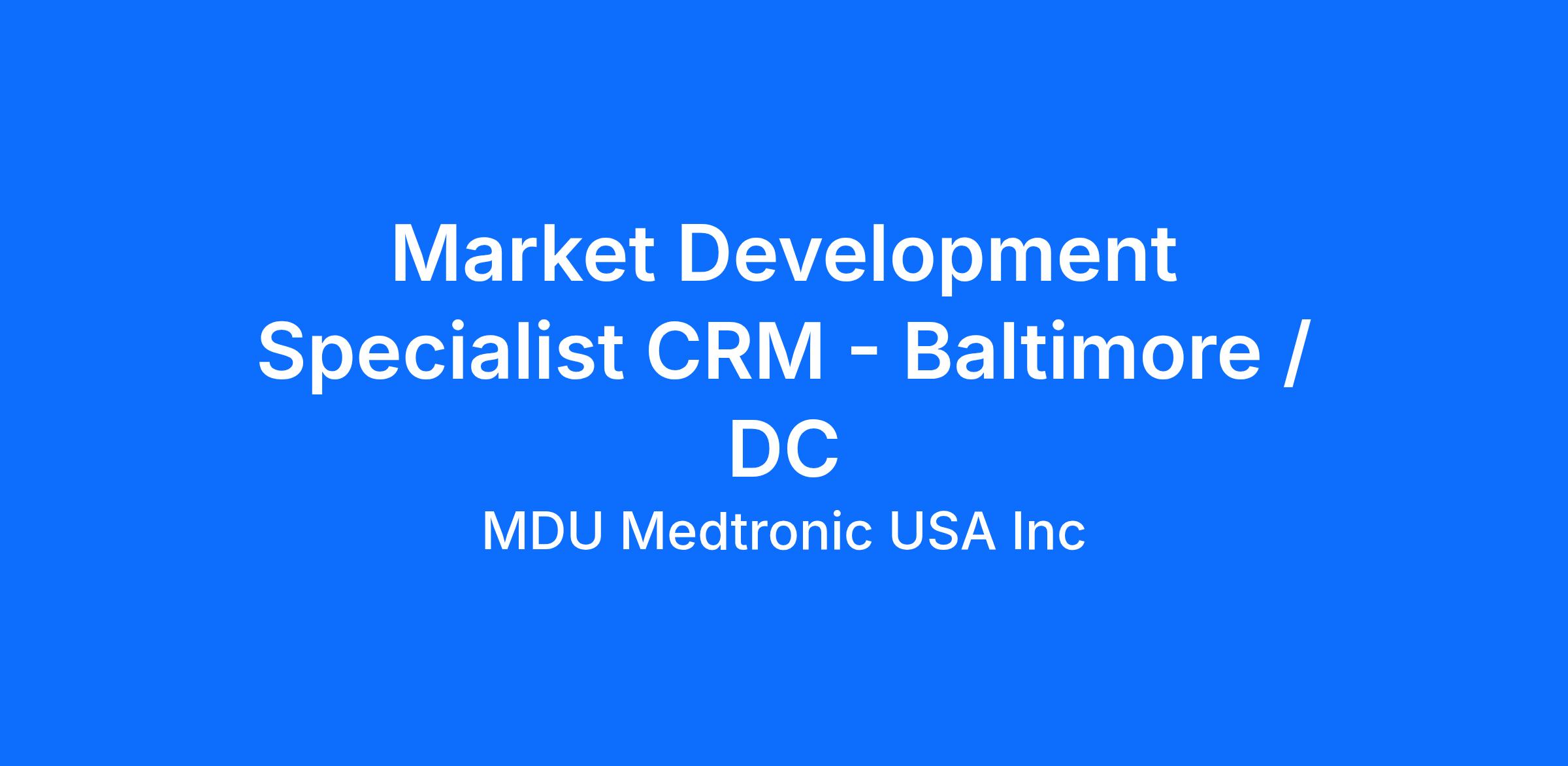 Market Development Specialist CRM - Baltimore / DC