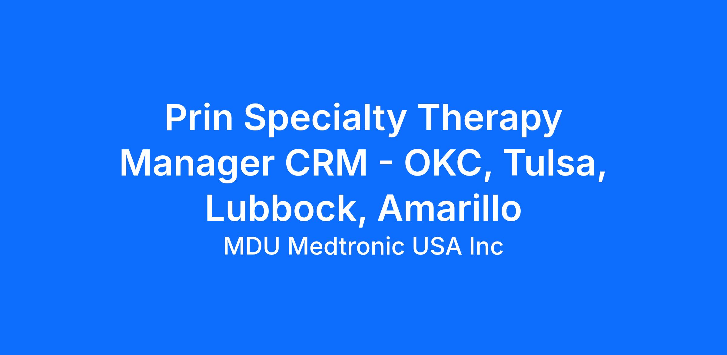 The Specialty Territory Manager is responsible for sales planning and execution, providing technical and clinical expertise and coordination of educational support to ensure safe adoption and growth of the Medtronic Micra VR & AV products (MICRA), EV-ICD, TYRX, and future Transcatheter/leadless or other innovative technologies. The Specialty Therapy Manager works closely with implanting teams and the Medtronic Cardiac Rhythm Management (CRM) field organization to drive sales execution, and procedural and practice success.