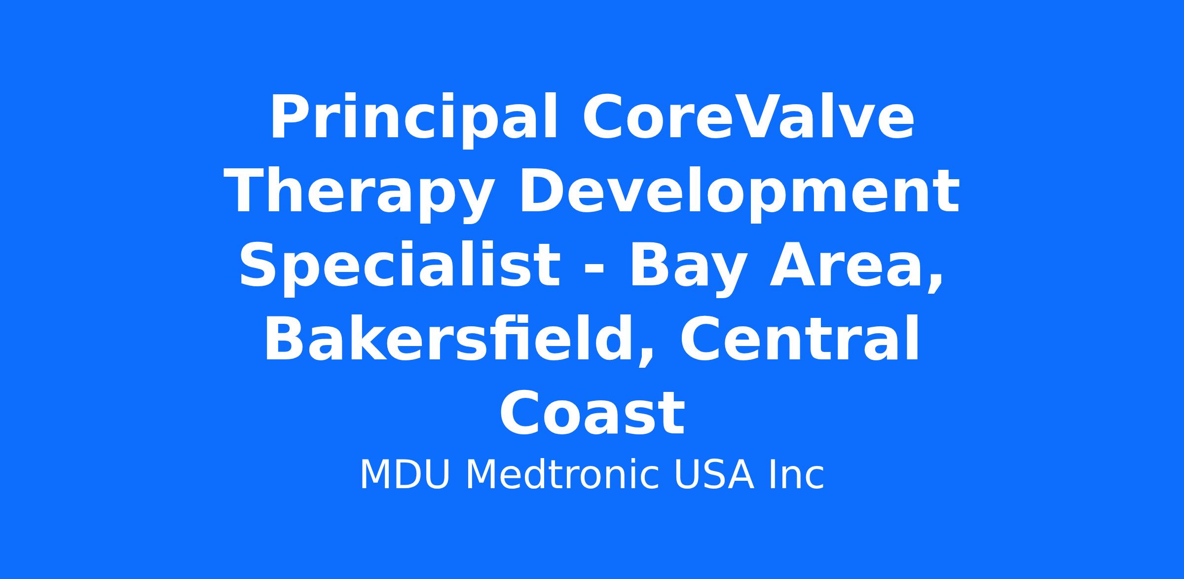 The CoreValve Principal Therapy Development Specialist (TDS) provides technical, clinical, educational and sales support to ensure safe adoption and growth of the Medtronic CoreValve System and future catheter-based therapy technologies. The CoreValve Therapy Development Specialist works closely with implanting teams and the Medtronic Catheter-Based Therapies (CBT) and CVG field organizations to drive procedural and practice success.