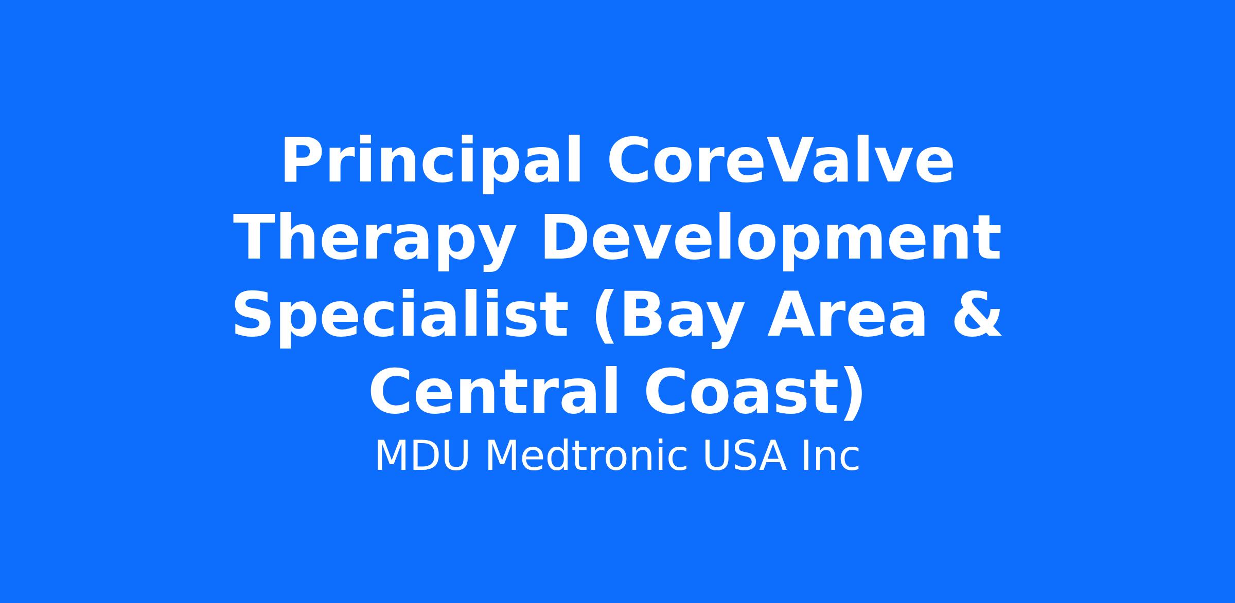 The CoreValve Principal Therapy Development Specialist (TDS) provides technical, clinical, educational and sales support to ensure safe adoption and growth of the Medtronic CoreValve System and future catheter-based therapy technologies. The CoreValve Therapy Development Specialist works closely with implanting teams and the Medtronic Catheter-Based Therapies (CBT) and CVG field organizations to drive procedural and practice success.