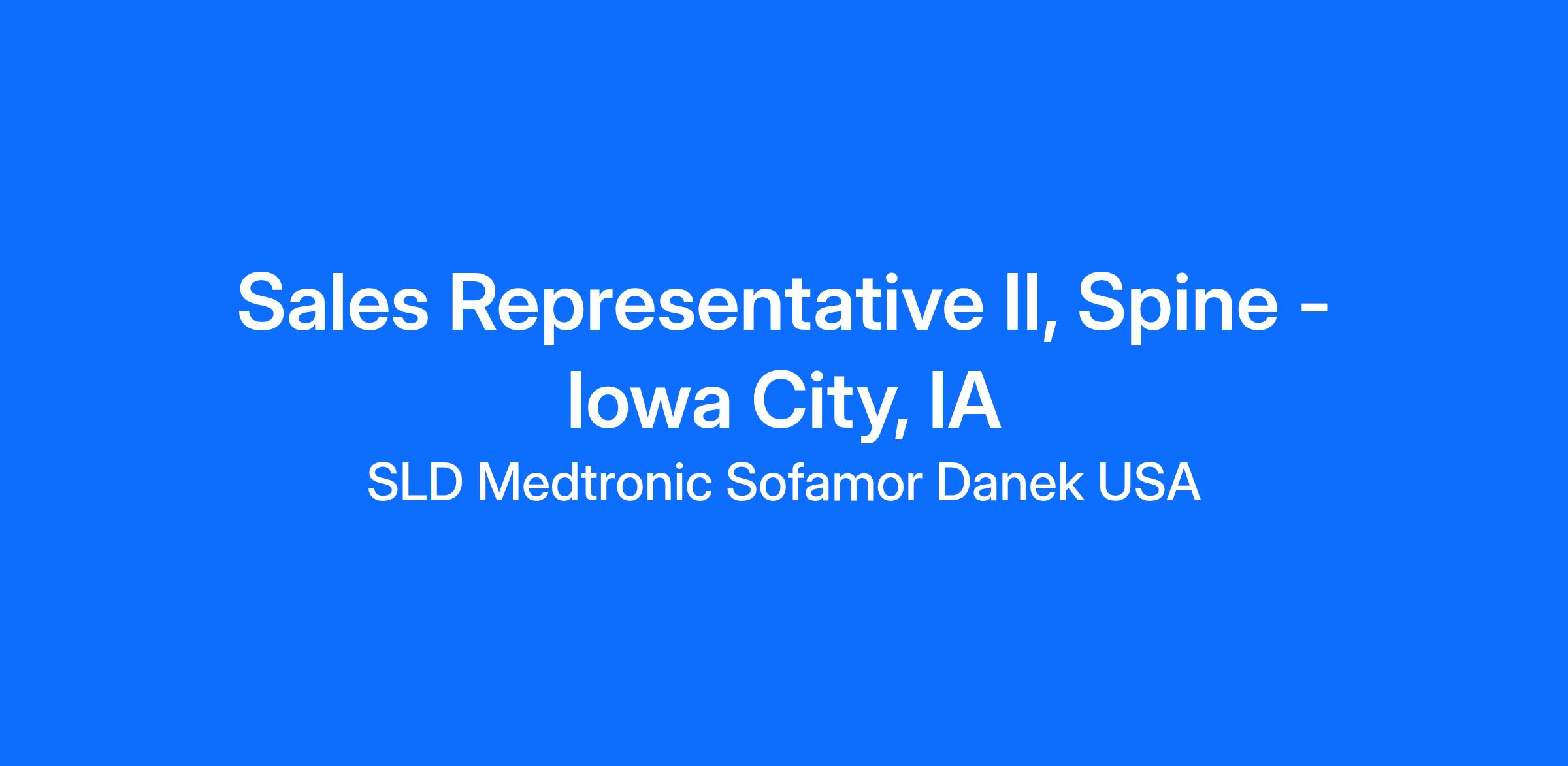At Medtronic, the Sales Representative II, Spine is responsible for making field sales calls, soliciting orders, selling assigned Medtronic Spinal and Biologics products and representing the company in accordance with its policies and in the assigned territory; for maintaining an awareness of local competitive conditions and for reporting back promptly to the district manager.