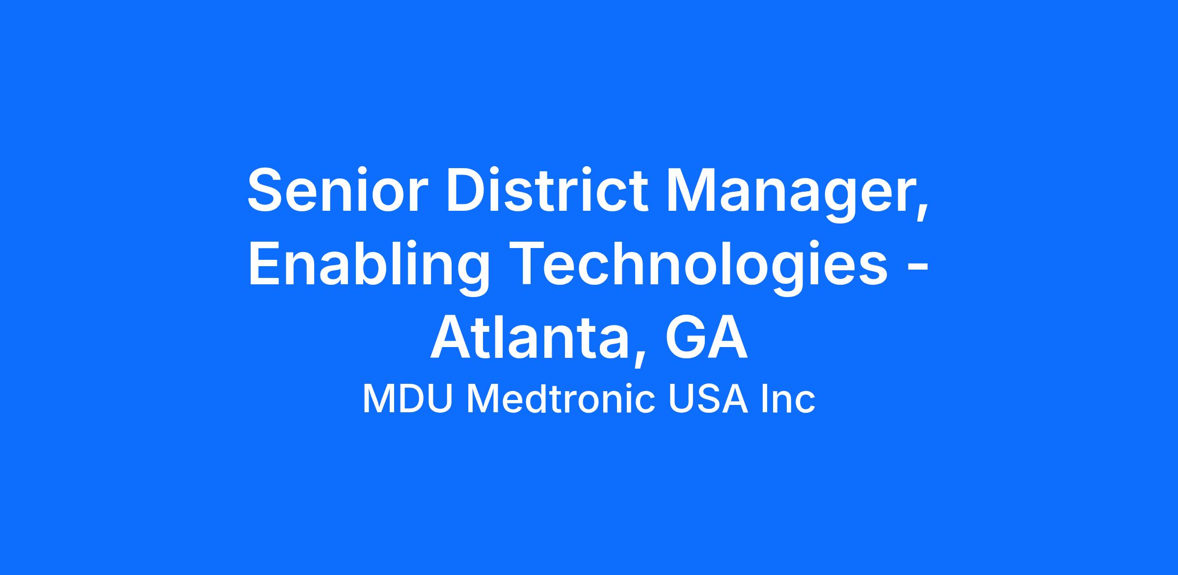At Medtronic, the Senior District Sales Manager, Enabling Technologies manages the achievement of unit and revenue goals for assigned therapy products in an assigned district. Assists the district and region in achieving overall assigned therapy product sales and marketing objectives. Neuroscience seeks candidates who will meet our customer expectations by striving without reserve for the greatest possible reliability and quality in our products, processes and systems by being accountable, having a voice, and taking action. Performs all duties in compliance with Quality System.