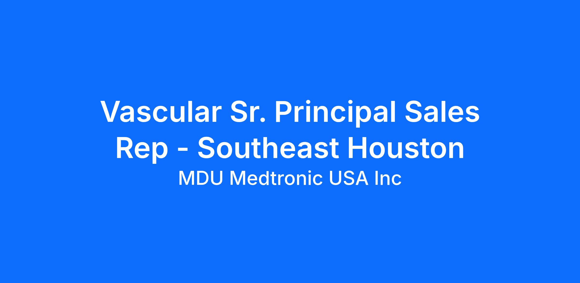 Vascular Sr. Principal Sales Rep - Southeast Houston